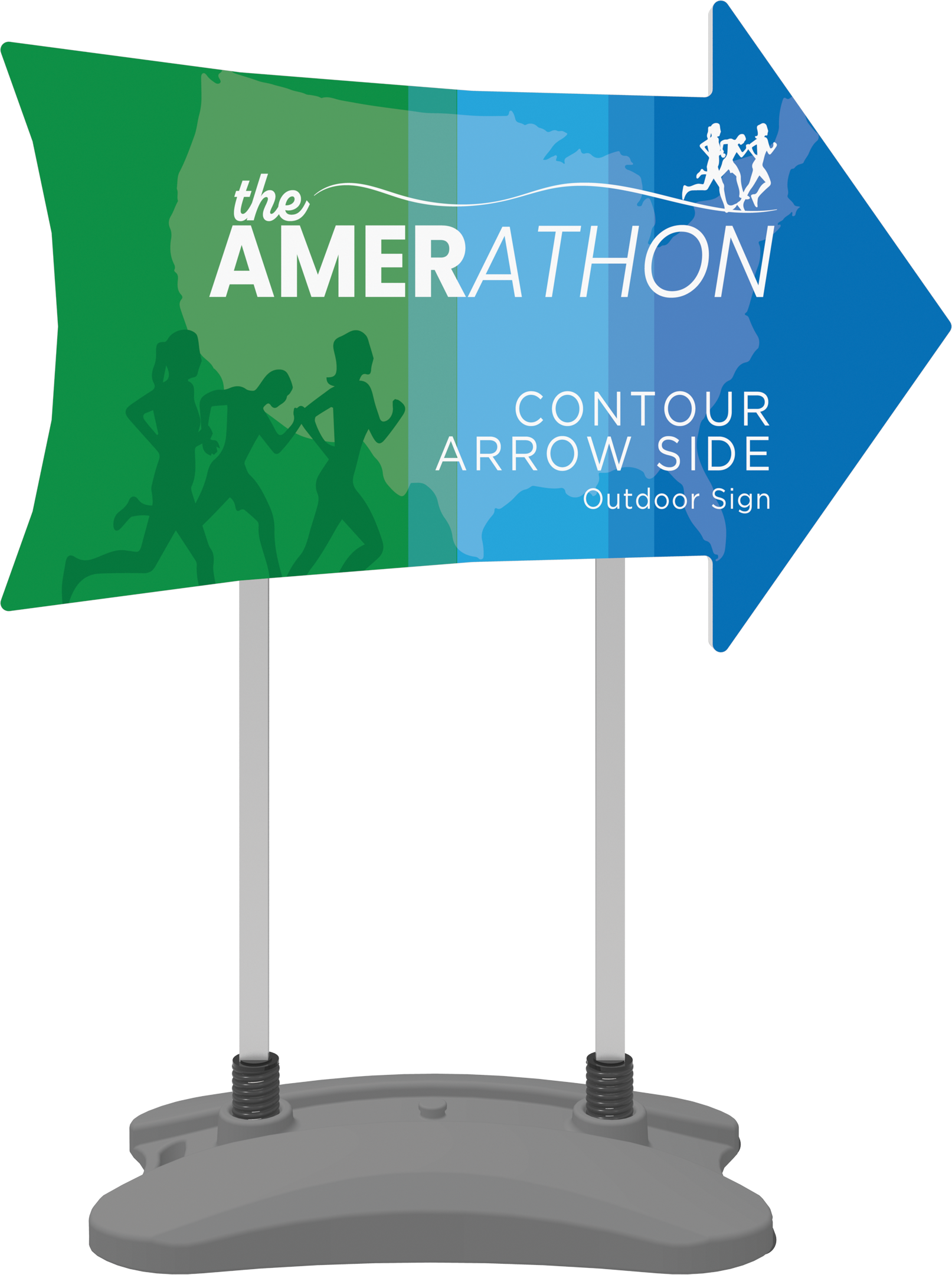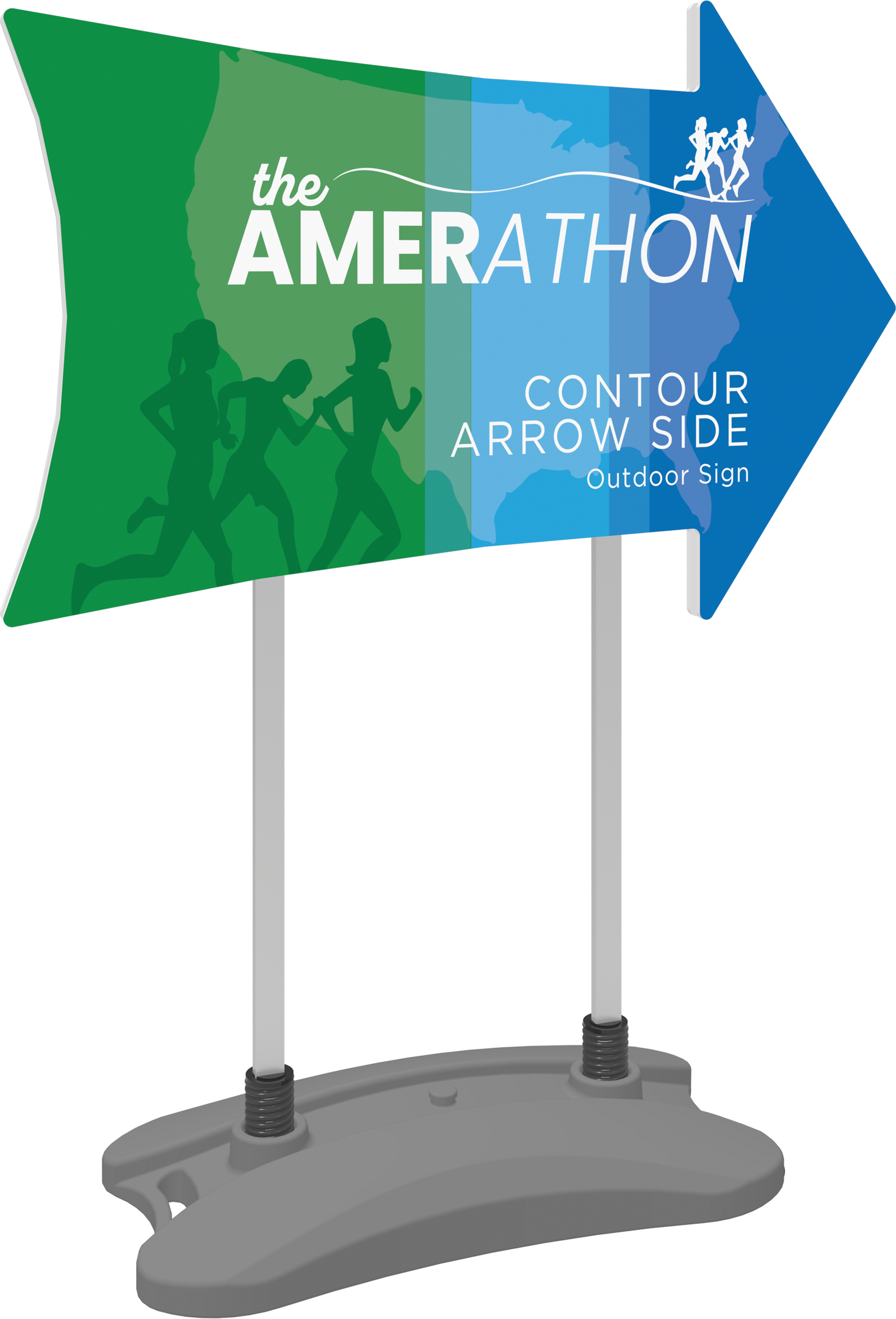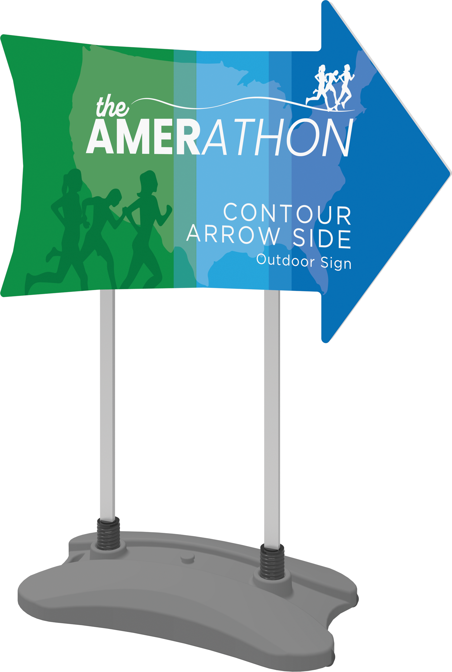 The Contour Arrow Side with water base is a heavy-duty double-sided sign that utilizes hook and loop connections to make graphic changes a breeze. The compact, molded water base features integrated wheels and a handle for easy transportation and can be filled with either water or sand for added stability.
