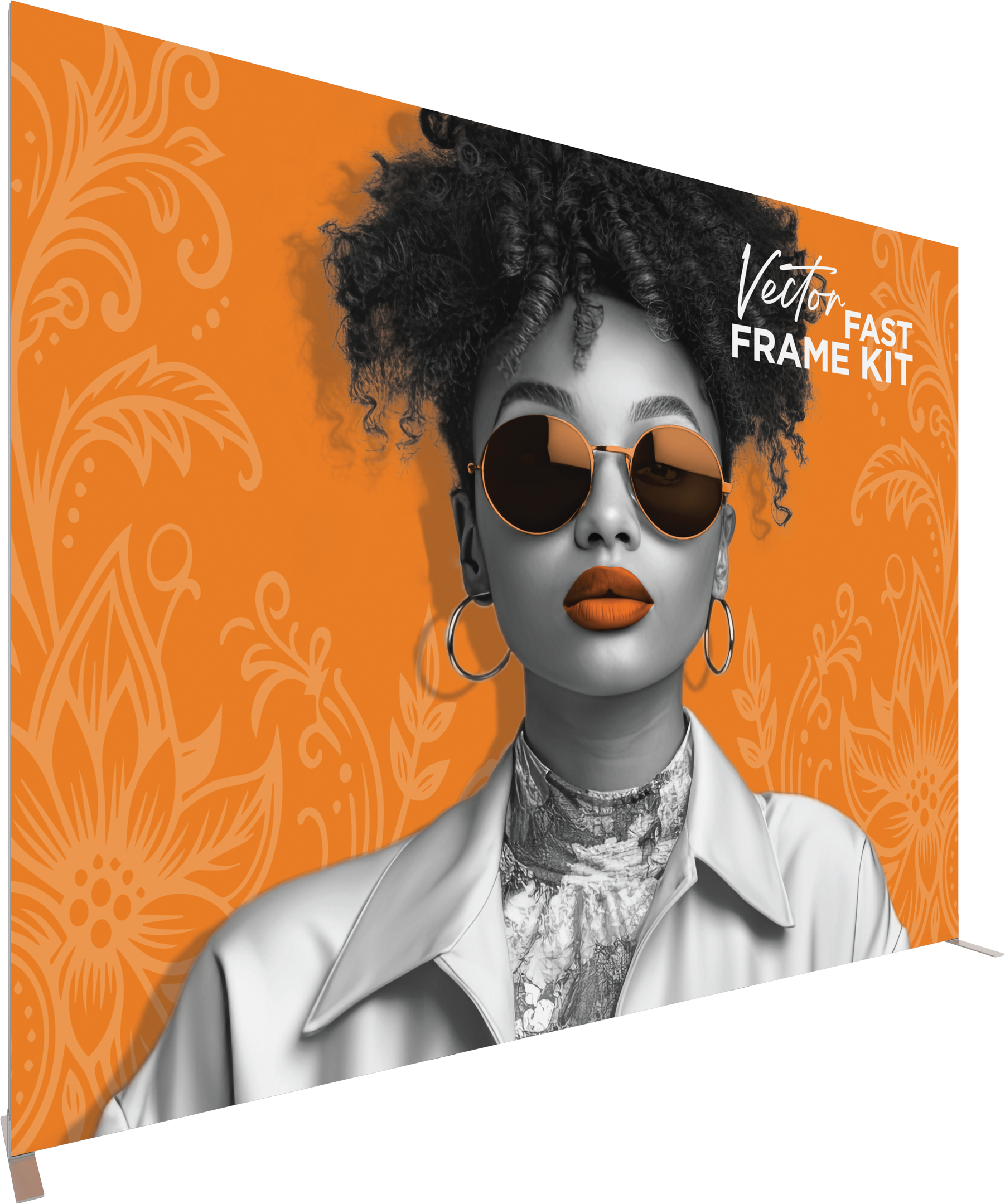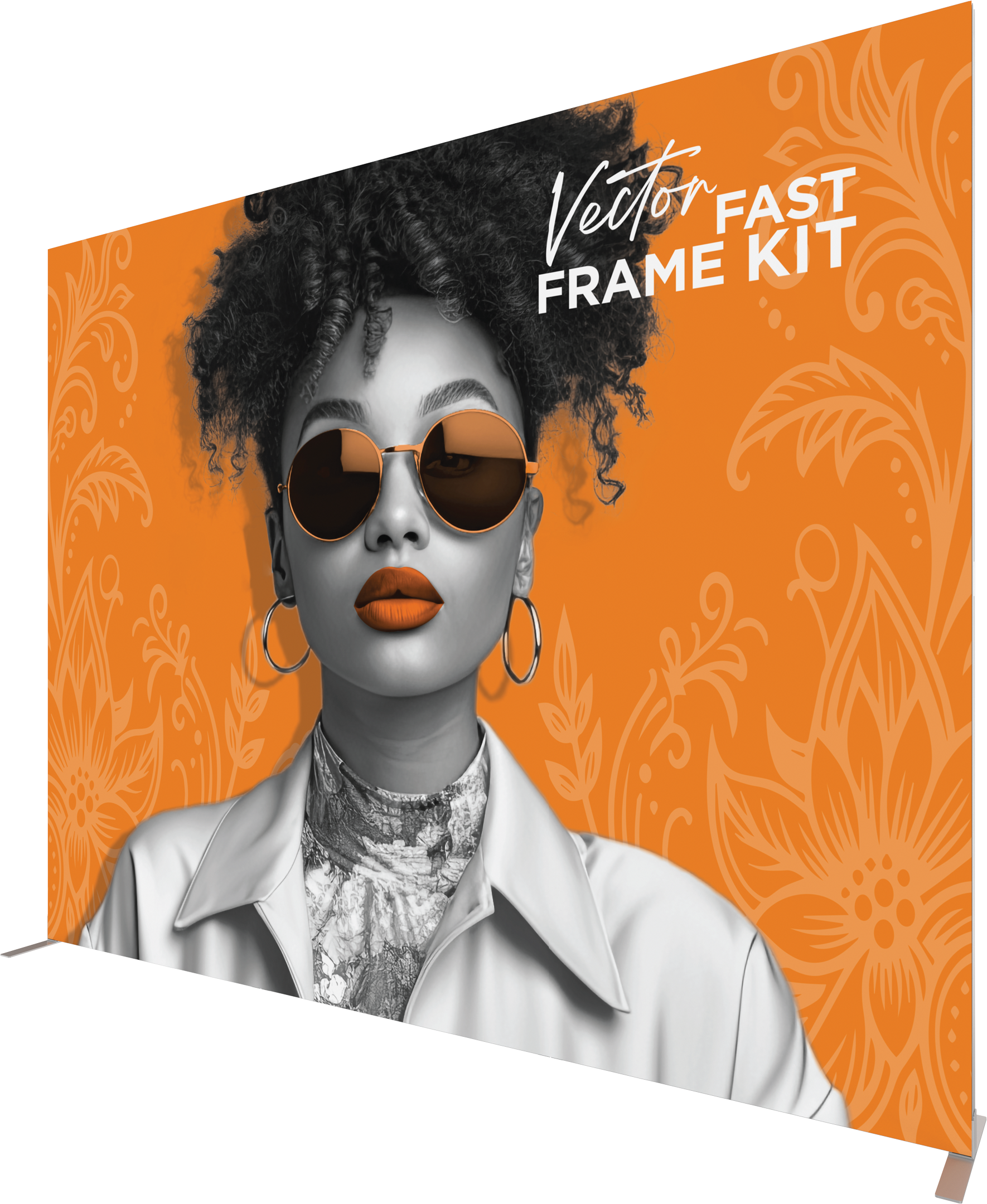 The Vector Fast Frame™ 10ft Backwall Kit combines multiple collapsible SEG fast frame panels to create a seamless 10ft wide backwall display. Ultra slim and toolless, the kit assembles in seconds and collapses for easy transport and storage. Magnetized panel sides connect side by side for a seamless look.