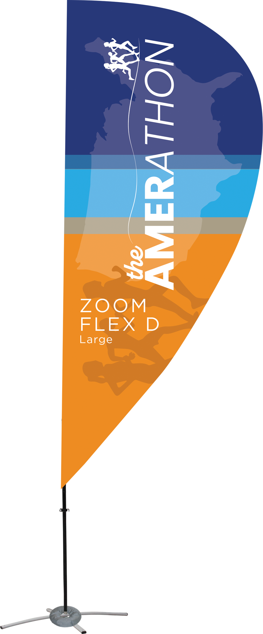 Advertise your brand with the Zoom Flex D-Shaped Medium Flag; perfect for outdoor advertising and events. The bold, double-sided pillowcase fabric zips easily over the durable fiberglass frame. The flag is a towering addition and measures 10'. Several optional base options allow for a simple and convenient set up in any environment.